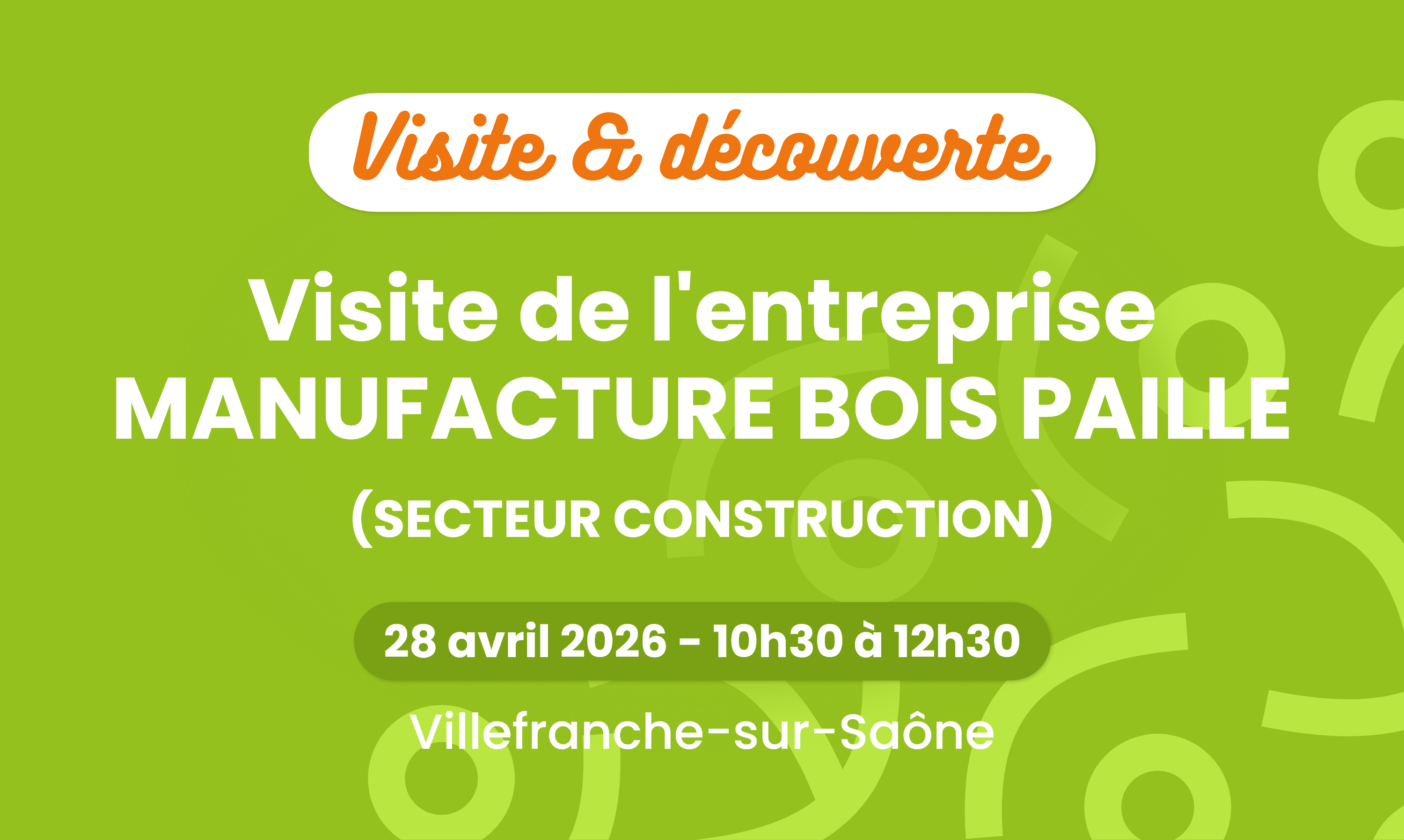 Dans le cadre du Printemps des Entreprises, la Mission Locale accompagne un groupe de jeunes pour visiter l'entreprise Manufacture Bois Paille à Villefranche-sur-Saône. Cette visite est une occasion idéale pour découvrir une entreprise locale qui recrute et forme, explorer différents métiers, poser vos questions directement aux professionnels et vous faire votre propre idée sur ce secteur d'activité.
